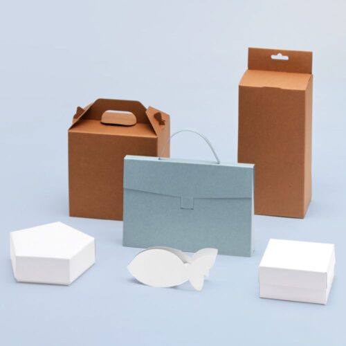 化粧箱ともいわれる紙器箱。中の商品を護るだけでなく、